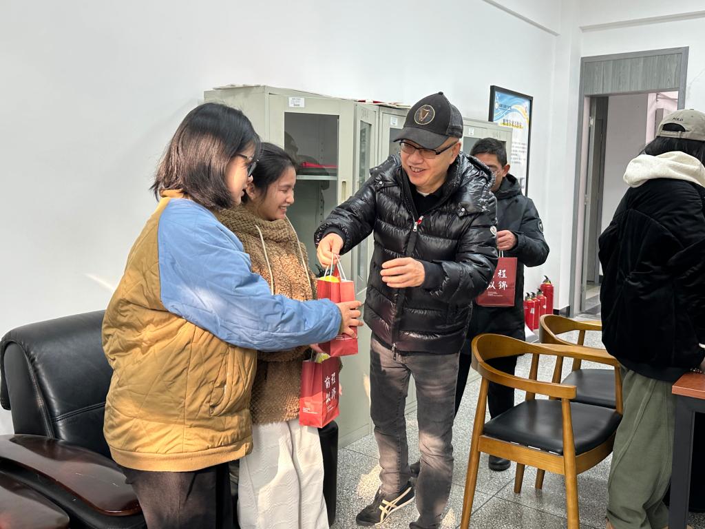 院长诸丹,党委书记杨春霞,副院长张学权,党委副书记周红,学工办主任燕爽及全体辅导员,对正在认真备考的考研同学进行了慰问,为2025届考研学子加油鼓劲,送上真挚祝福,让寒冬备考的他们感受到学院满满的关怀与支持。