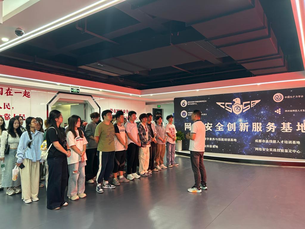 活动伊始,工作人员热情地带领同学们参观基地,详细介绍了网络安全创新服务基地的发展历程、人才培养模式、产教融合理念,以及企业服务事项和网络安全赛事、技能鉴定的开展情况,让同学们对基地有了全面且深入的了解,也对网络安全领域有了更直观的感受。