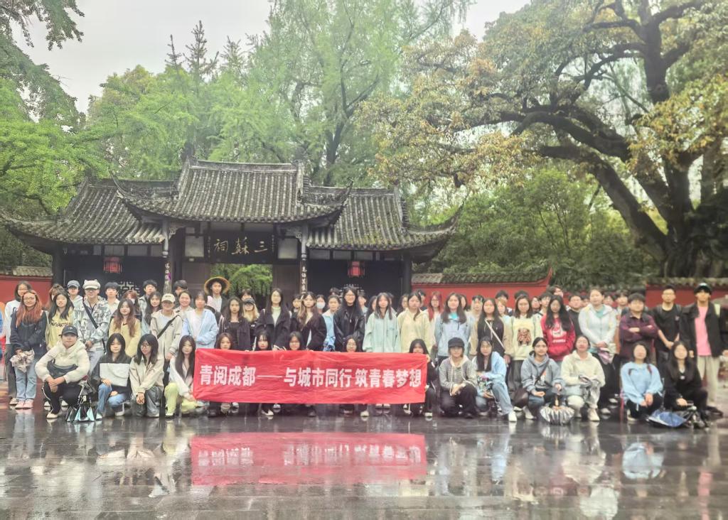 80名学生在祝郁欣和刘振中老师的带领下,统一前往眉山市三苏祠开展行走的大思政课---“弘扬三苏文化,践行青春使命”主题实践活动。活动中,同学们循着苏洵、苏轼、苏辙的人生轨迹,品读其传世佳作的艺术精髓,梳理三苏祠百年的沧桑变迁,更透过当代学术研究触摸了东坡文化的时代脉搏,沉浸式领略了“读书正业、孝慈仁爱”的三苏家风家训,深刻感悟了“轻财、清正、亲民、勤政”的廉洁文化和“守其初心始终不变”的民本思想。