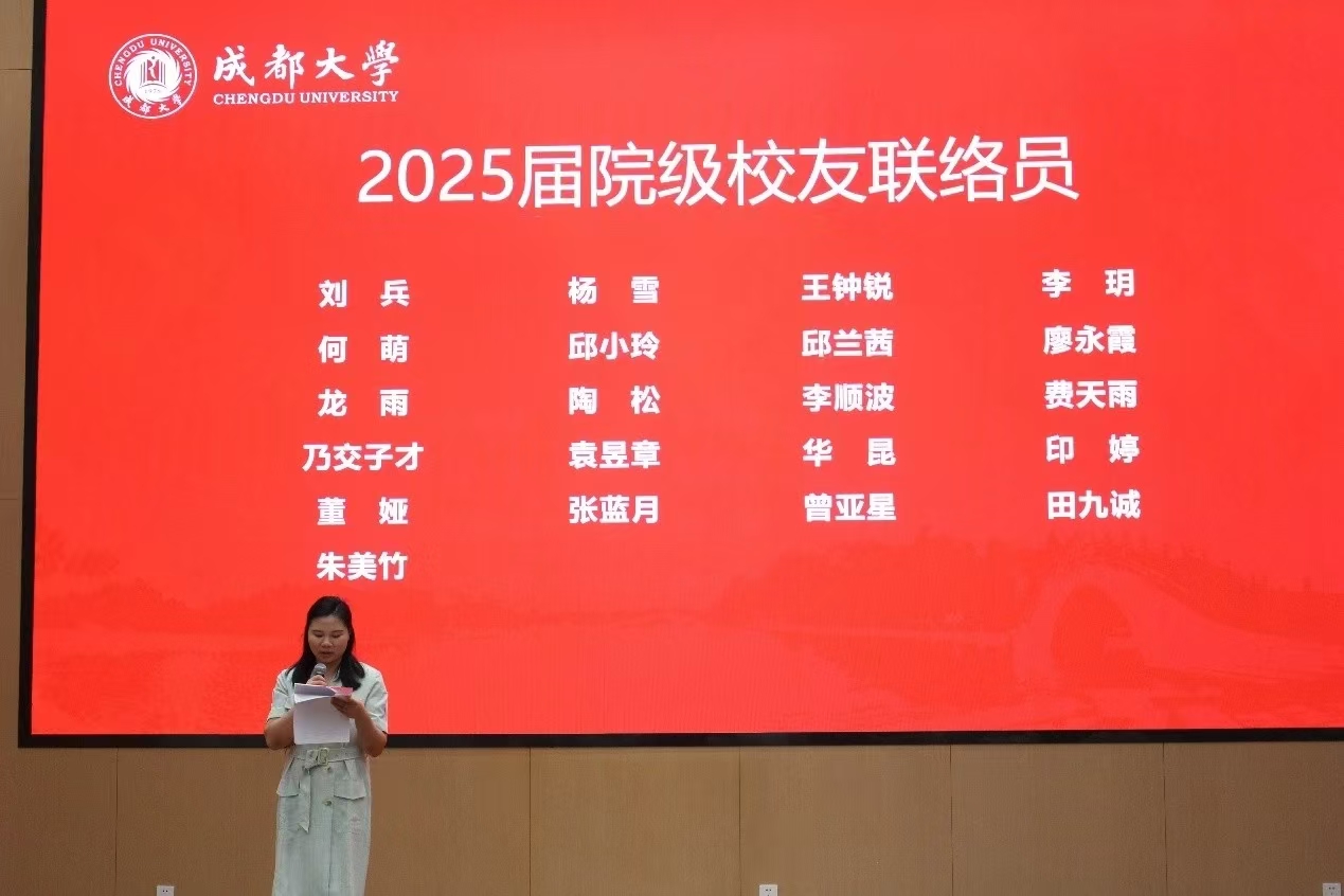 党委副书记周红宣读2025届校级、院级联络员名单,这份名单承载着特殊的使命与期待。接过聘书的学子们,将成为学院与校友间的温暖纽带,让这份情谊跨越山海,生生不息。