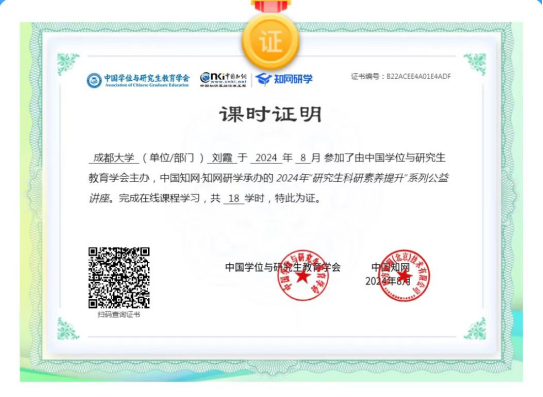 研究生受邀参加由中国学位与研究生教育学会主办的“研究生科研素养提升”系列公益讲座。本次讲座旨在响应教育部关于人工智能赋能教育的号召,提升研究生的科研素养与能力,特别是在人工智能的正确认识与使用方面。