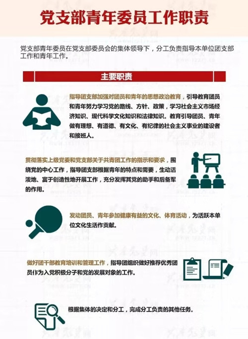 党支部委员的职数和设置,应根据党员人数和工作需要来确定。一般情况下,支部委员的职数应是单数,以3—5人为宜。最多不超过7人。可分别设支部书记、组织委员、宣传委员、纪检委员。支委多的还可以设副书记、青年委员、保密委员、统战委员等。党员人数不足7人的党支部,一般不设支部委员会,只设书记1人,必要时可增设副书记1人。支部委员会实行集体领导,有些工作不一定要设专门委员。