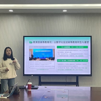 于11月25号下午邀请智慧树资深金课咨询师庞丹举办题为“AI赋能本科教育教学——智慧课程建设及运用”的专题讲座。此次讲座旨在探讨如何利用人工智能技术推动智慧课程的建设与应用,从而为学生提供更加个性化、高效的学习体验。学院副院长张学权教授主持讲座,学院相关专业教师参加培训。