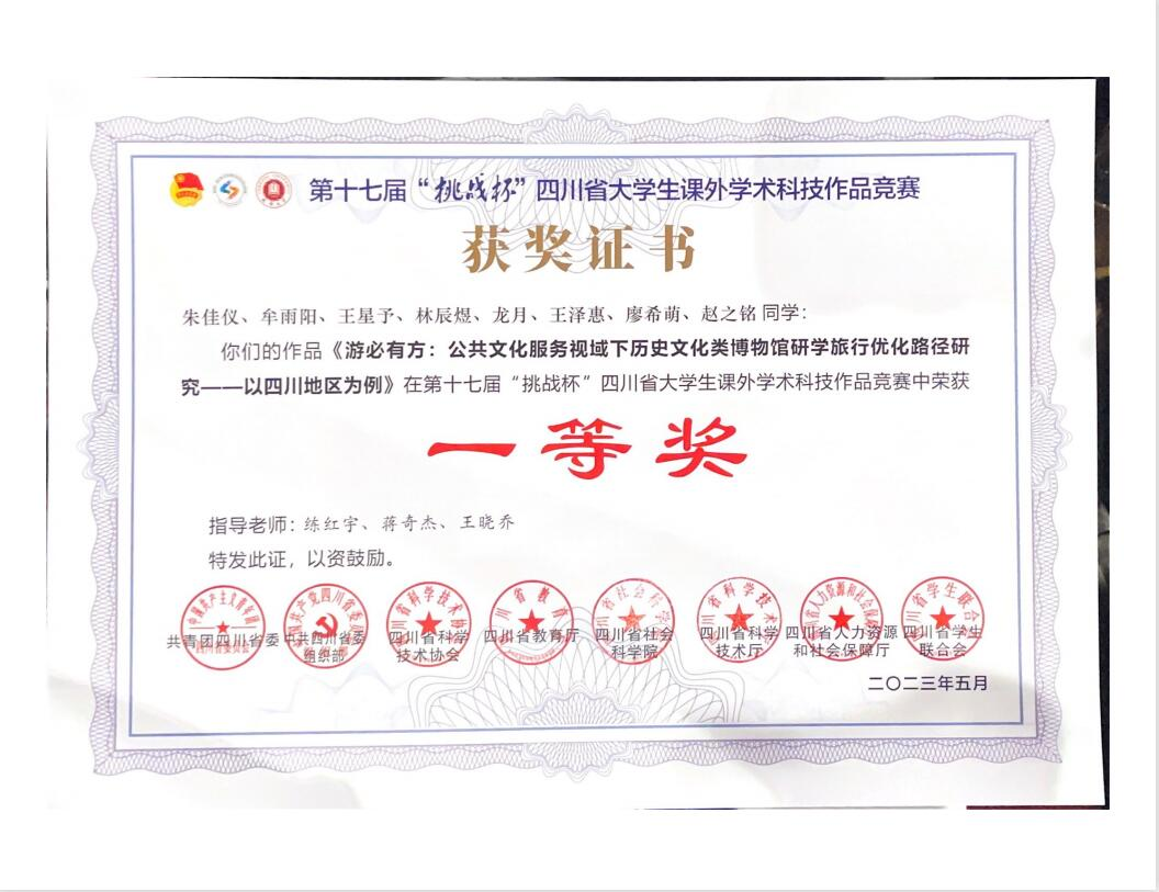 (3)省级人才培养创新基地:四川省创意型旅游人才培养创新基地