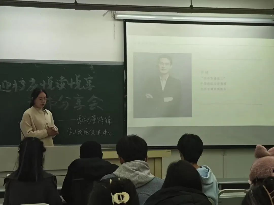 朝艳同学认为大学的学习不应仅是局限于自己的专业知识,更应当了解不同领域的知识。于是在“青春力量特辑”的读书分享会中,她通过向同学们介绍《圆圈正义》,号召同学们开拓视野,去广泛涉猎各领域的知识,并分享了知网、智慧树、慕课、学习强国等学习平台。针对大学课程的实践性特点,朝艳同学鼓励同学们积极参与专业实践与项目竞赛,并分享了“以行交友、以赛促学”的学习方法,激励同学通过竞赛来深化专业学习。