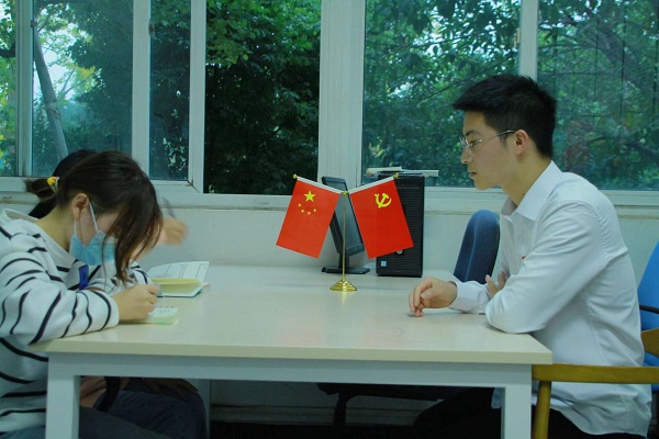 以青春之名,书写清澈挚爱。长周学长一直都在思考自己成为正式党员后能给党组织带去什么,应该怎样发挥自己的价值,他将自己的思考一步一步地落实到切实的行动上。思想上,积极与学院的老师沟通交流,阅读党史的相关书籍,提升自己的党性修养;实践上,他不断诠释和发展党员发展三步走六支撑培养方案,积极地服务学院、老师和同学们,赢得了一众好评。
