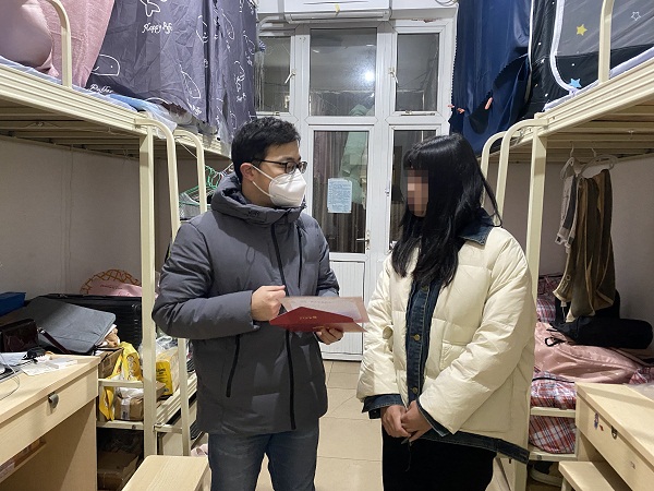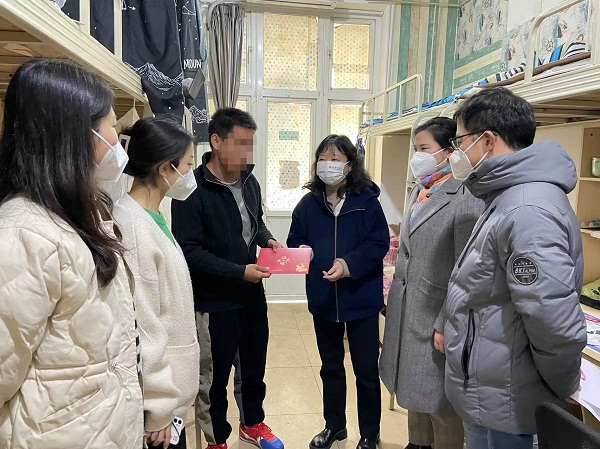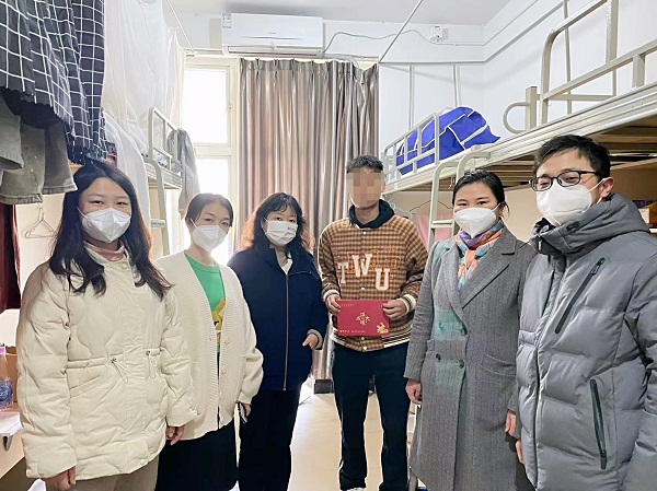 为加强对家庭经济困难学生的关心关爱,落实“新春送温暖”工作方案,学校决定对经济困难学生家庭开展走访慰问活动。1月6日,学院党委书记杨春霞、副书记周红带领班主任和辅导员慰问假期留校家庭经济困难学生。本次走访慰问对象主要为脱贫不稳定家庭学生、边缘易致贫家庭学生、最低生活保障家庭学生等特殊困难学生群体。