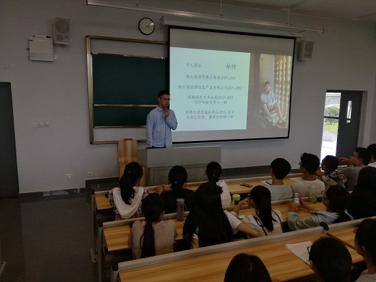 2018 年 9 月 12 日下午2:30*成人抖音 邀请成人抖音 校友成都天府花溪谷景区副总经理、董事长助理林付在综合楼A120教室举办了一场创业讲座。旅游管理专业全体新生聆听了本次讲座。