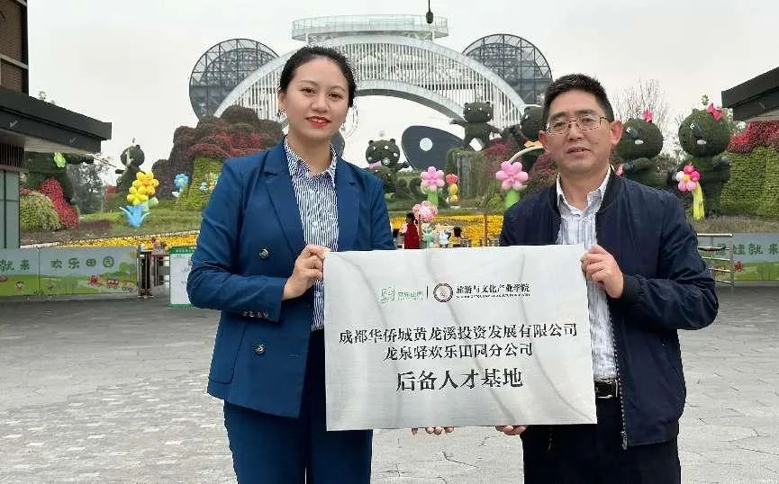 授牌成都华侨城黄龙溪投资发展有限公司龙泉驿欢乐田园分公司为“大学生就业实习基地”,校企携手共促文旅产业发展。未来校企双方将保持交流、互相支持、长期合作、利益共享、共同助力培养应用型人才。