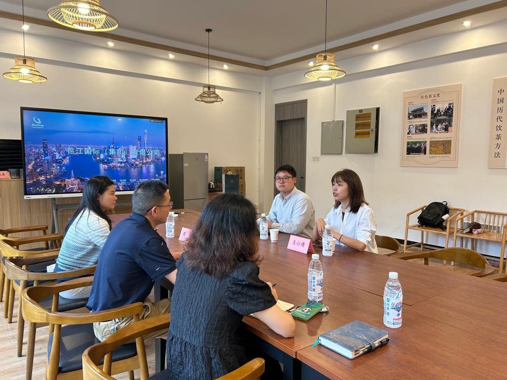 校企合作洽谈会在4101B举行。锦江国际(集团)有限公司陈浩、人力资源部经理王小倩一行,学院副院长张学权、党委副书记周红、学生办公室主任燕爽、辅导员张龙翼出席会议。双方就人才需求、学生实习就业情况,进行了亲切友好的交流。双方本着务实精神,注重落地,注重效果的理念,围绕人才培养、就业实习、课题研究等领域展开多方面探讨,积极推动院企融合,实现多维度、全方位合作。
