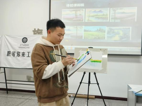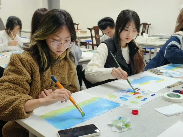 活动伊始,逐梦刀画画室的邱付友老师为大家详细讲解了刀画这一独特非遗项目的发展历程。邱老师生动地阐述了刀画从起源到逐渐发展壮大的过程,让在场的每一位参与者都深深沉浸在刀画艺术的丰富内涵中。在体验环节,大家纷纷拿起画笔和特制的刀具,开始尝试亲手创作刀画。邱老师在现场亲自演示刀画创作过程,从颜料的调配、笔触的运用到刀具的独特技法,每一个步骤都清晰地展示在大家眼前。同学们自己动手体验时,邱老师穿梭其中,为大家悉心指导,一幅幅各具特色的刀画作品在大家的手中逐渐成形。
