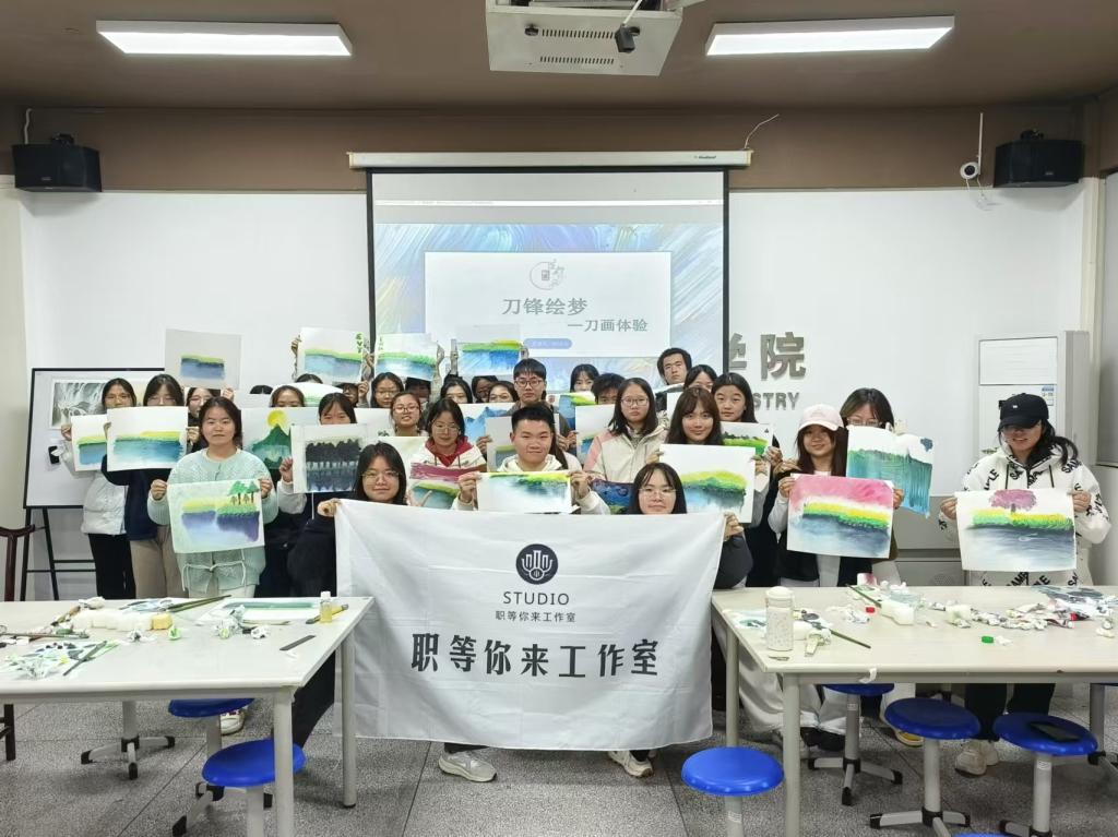 2024年11月18日晚上,非物质文化遗产刀画体验活动在4102成功举办。本次活动由职等你来辅导员员工作室主办,非遗协会和轻旅社区育人工作站协办,为来自四个学院共计35名同学们近距离感受非遗刀画提供了机会。