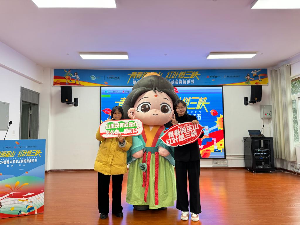 活动当天,通过沉浸式主题展、推介会等内容,大学生们深入感受到了巫山区域丰富多彩的文化旅游资源与风光魅力。推介会上,一段巫山红叶的美景视频开场,瞬间点燃了现场的气氛,仿佛已经置身于那片火红的海洋,感受着大自然的壮丽与神秘。巫山文旅推介官详细介绍了巫山红叶节的系列活动,徒步节线路的发布,激起了同学们的探险欲望。在巫山的山水间,与志同道合的伙伴们一起徒步,感受每一步的挑战与乐趣,这不仅是一次身体的锻炼,更是一次心灵的洗礼。同学们听取了精彩推介并踊跃参与现场问答、抽奖活动等,现场氛围活跃。