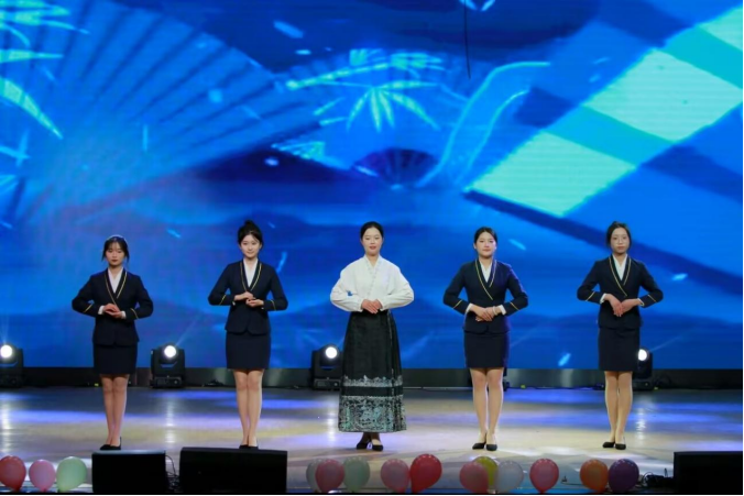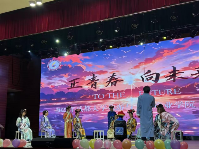 礼仪队带来的《国风·礼》仿佛穿越时空,展现了中华民族深厚的历史底蕴和文化风采,每一个瞬间都让人沉浸在美的享受之中。23级会展2班带来的《甄嬛传》的演出同样精彩纷呈,为同学们带来了无尽的欢笑,现场的气氛极为欢快。
