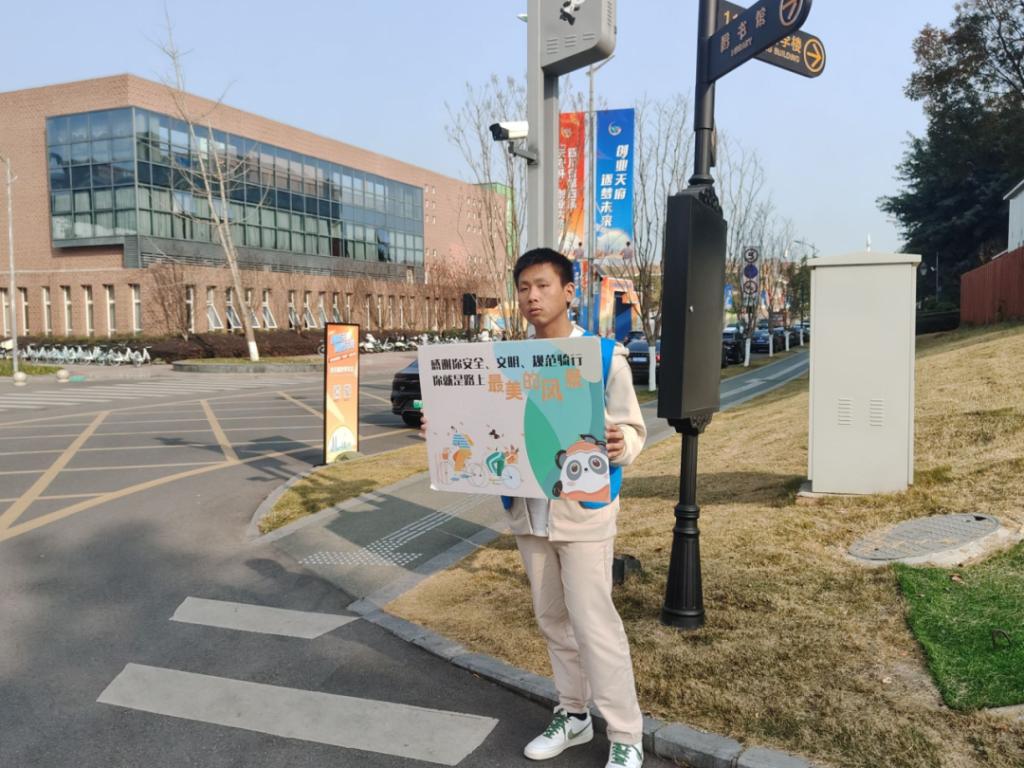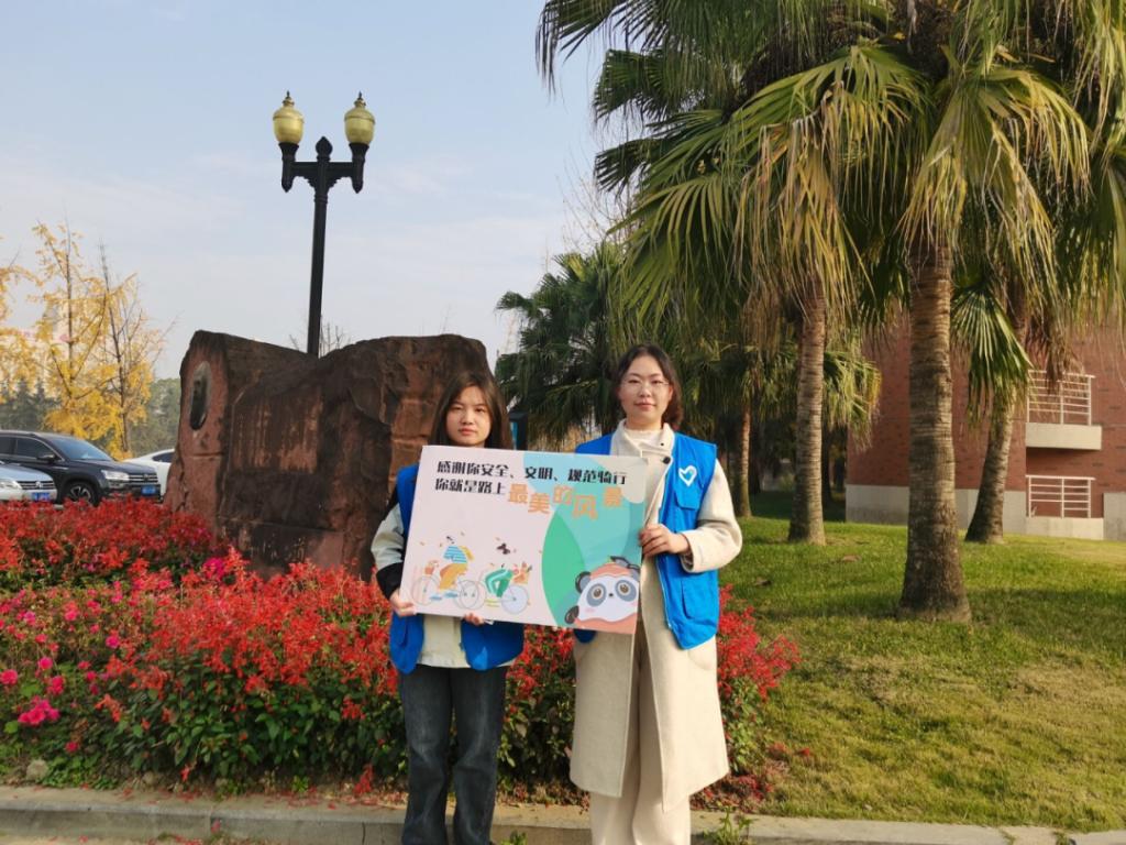 我校的电瓶车、自行车数量与日俱增,虽然便利了大家的出行,但不规范、不文明的骑车行为极大增加了交通安全隐患。此次“文明骑行”专项活动也特意涉及校内三个人流量、车流量主要汇聚区域,分别是学校南门及一教周边、新空间广场及八教桥头、综合教学楼周边。