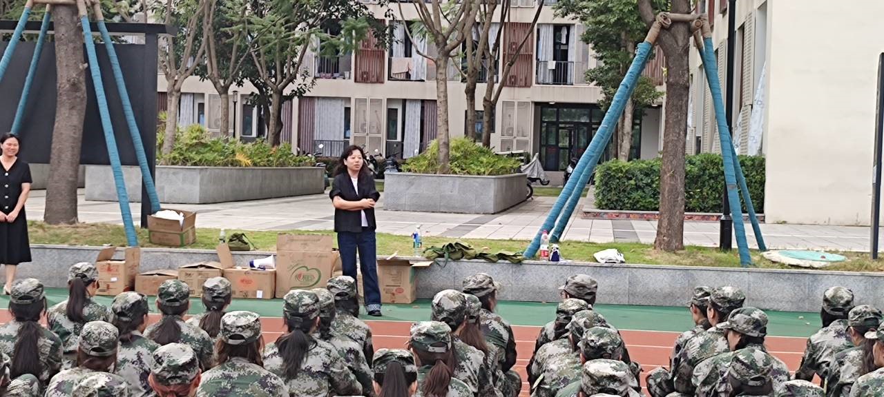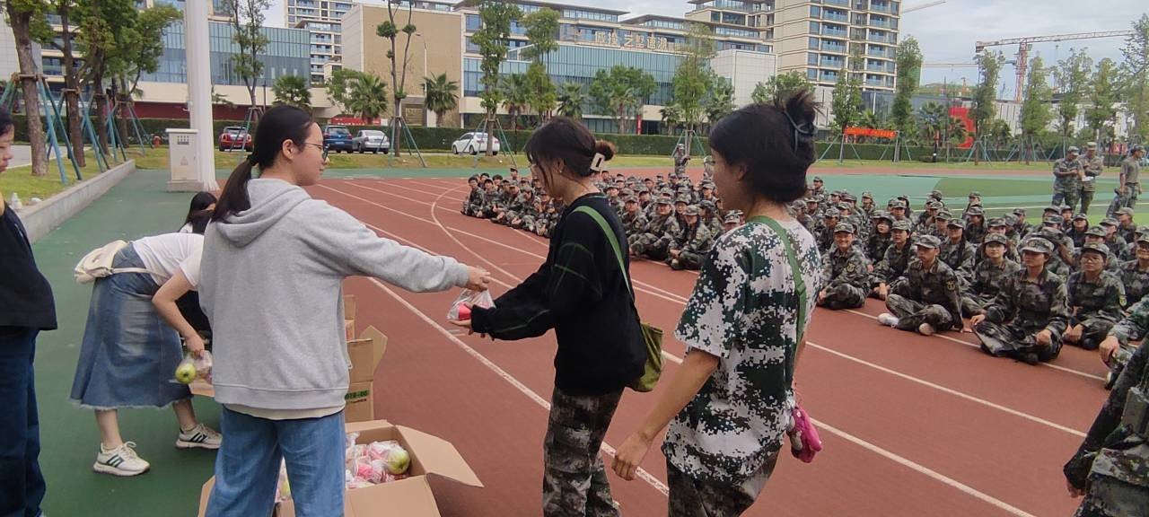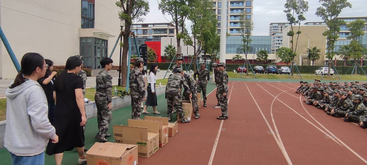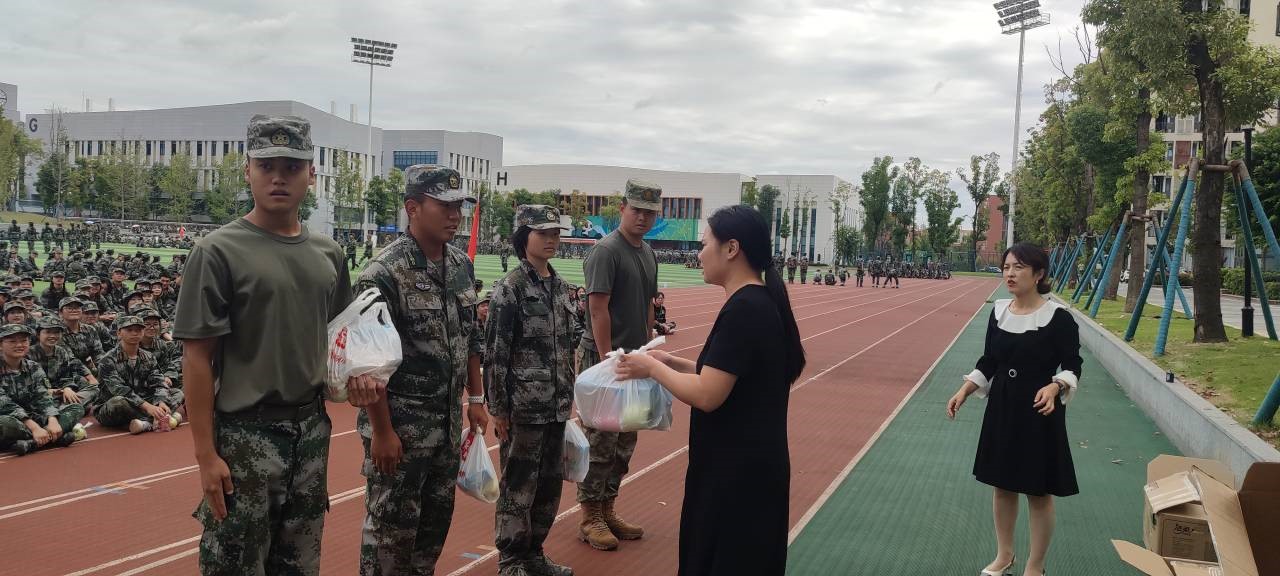 杨春霞书记代表学院对全体参训同学致以真切的关怀,对教官们的奉献致以衷心的感谢,杨书记赞扬了军训学子们吃苦耐劳的意志品格,勉励同学们珍惜军训时光,以昂扬的斗志和饱满的精神面对军训中的各项任务,希望同学们以军训为契机,在辛勤付出中收获成长,在今后的学习和生活中无畏风雨、砥砺前行。随后,周红副书记肯定了大家在军训中的优异表现,希望同学们把不惧挑战、无畏前行的精神带到今后的学习与生活中。她预祝军训取得圆满成功,成为大家人生中难以忘怀的回忆。最后,学院向大家发放小礼品,大家的喜乐之情溢于言表,此次慰问活动在一片军歌声中结束。