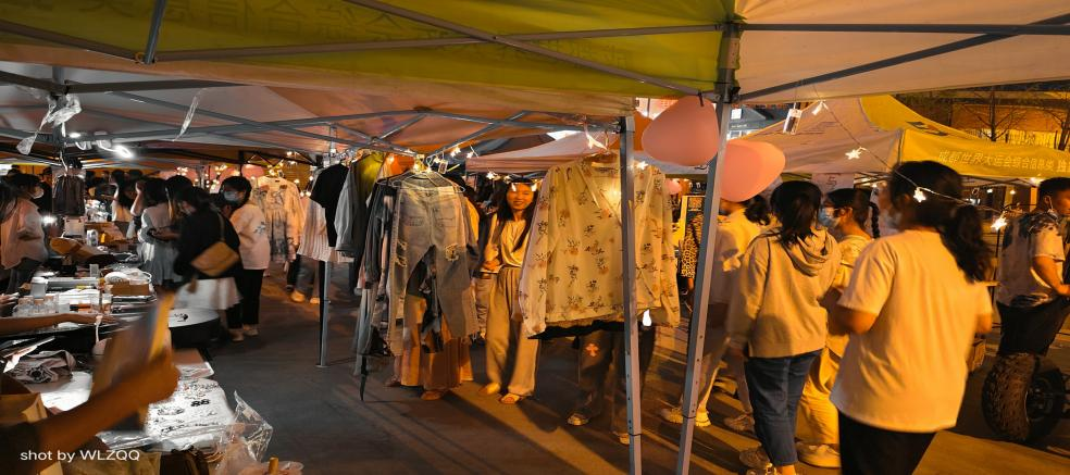 下午三点左右,摊主分别来到安排和布置好的摊位上,摆放自己需要售卖的商品,进行售卖。活动现场的卖品十分丰富,有服饰、二手书、小饰品,旅游产品。特别值得一提的是有一技之长的卖家同学通过下棋活跃现场气氛,奋力营销,引导同学们积极购买自家物品。