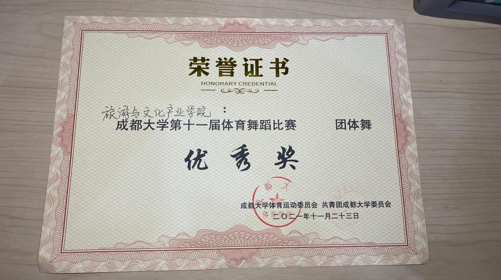 第十一届体育舞蹈大赛团体优秀奖.