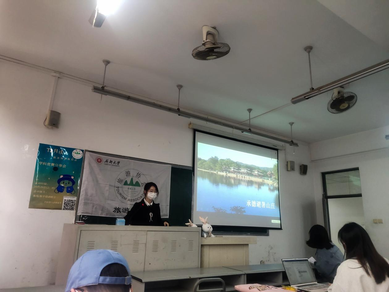 接下来是个人积分勇抢环节,由会长在台上播放景区图片,台下同学猜景区名称,举手并猜对者加分,在橙子们的踊跃回答中,会议的气氛达到了高潮。比赛结束后,由协会干事进行算分并公布最后三名获胜者,获胜者得到旅游协会准备的兔子玩偶奖品。