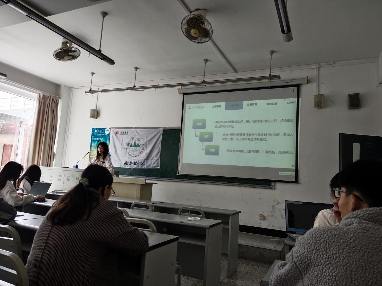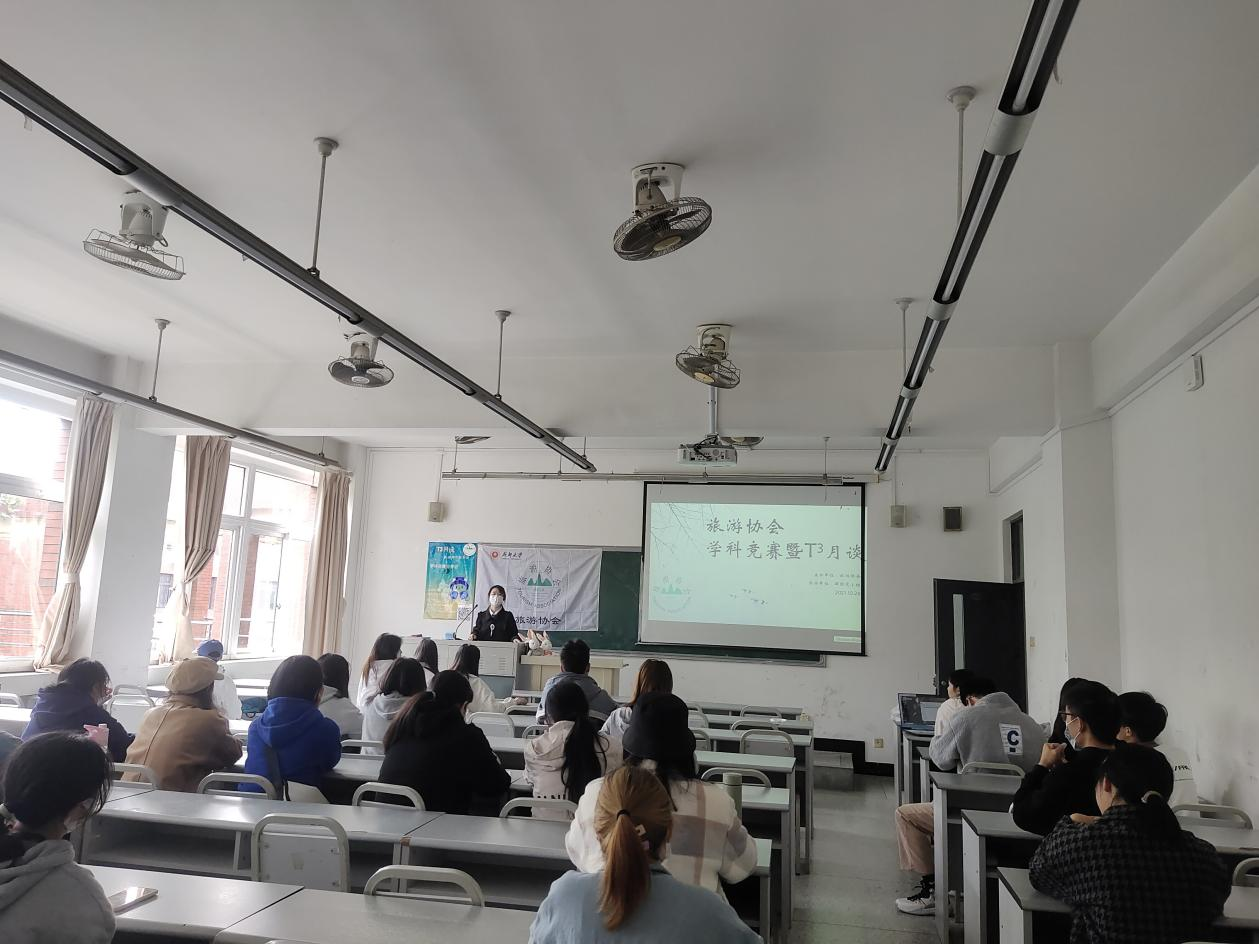 旅游协会携手党支部群团党小组于5316教室开展T3月谈创新创业学科竞赛分享会活动。在董汇琦会长的热烈致辞中,会议渐渐拉开了帷幕。