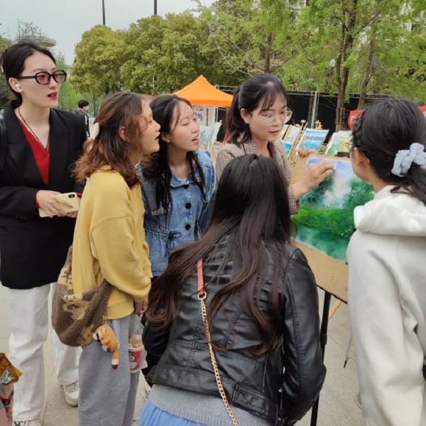 在4月18日到4月19日两天的时间里,新空间广场持续展出刀画作品。两天的画展上呈现出了各种各样的刀画作品,风格不一,极具魅力,包括传统的山水瀑布类刀画作品以及动物食物类刀画作品,使得路过新空间的同学甚至老师都不禁停驻观展,纷纷赞叹。更有现场作画环节,同学们饱含热情,丝毫不吝啬于表达对刀画的赞赏,同时在刀画老师们的指导下也进行亲身体验,感受刀画的奇妙之处!