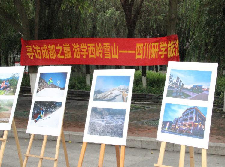 一食堂新空间广场举行了由四川研学旅游联盟主办的“寻访成都之巅,游学西岭雪山”主题摄影作品展,富有艺术性的作品向同学们分享了生活中的精彩瞬间,也展现了西岭雪山的宏伟秀丽。
