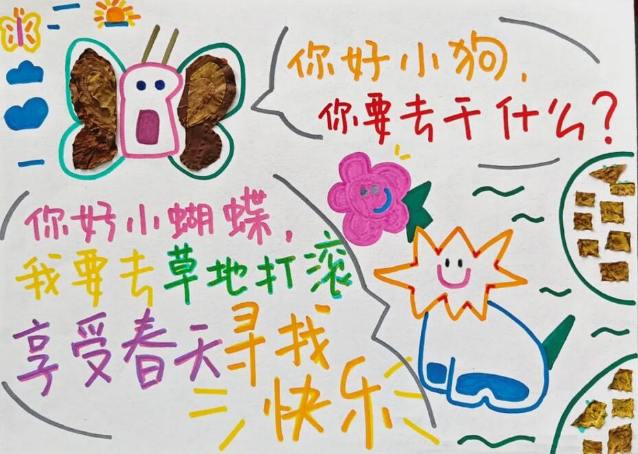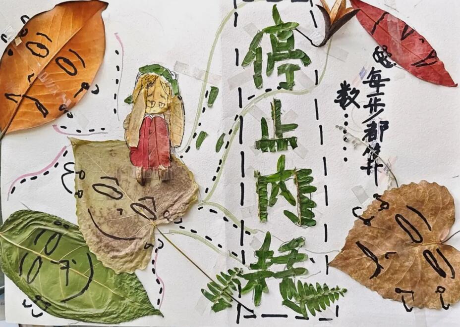 活动分为两阶段,第一阶段作品收集。5月14日在新空间摆摊宣传。活动开展时,同学们都积极参与,表现的很兴奋。在现场绘制贴画过程中,同学们利用一片片颜色、形态各异的树叶绘制出一幅又一幅美丽的画卷。本次活动成为了同学们表达心声的窗口,成为了舒缓内心,释放自我感情的疗愈方式。同学们的作品形态各异,但都和树叶的形状完美结合,创造出了独属于同学们的美丽画卷。