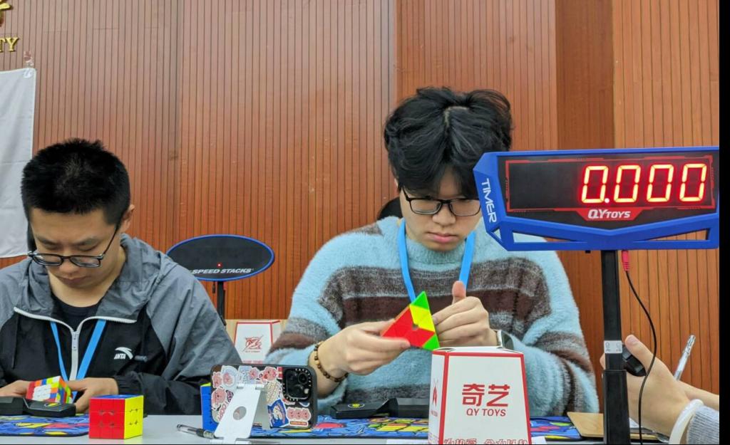 特色魔方项目更加精彩。李俊良在金字塔项目中以2.78秒的成绩夺冠,再次证明了自己在魔方领域的全面实力。李金戈在斜转项目中以2.57秒的成绩获得冠军,并在三阶单手项目中以14.68秒的成绩夺冠,在五魔方项目中以49.62秒的成绩再次登顶,展现了他在多个项目上的统治力。四川大学的袁子为在三阶盲拧项目中以惊人的记忆力和速度夺得冠军,而江政哲在魔表项目中以精准的操作获得冠军。