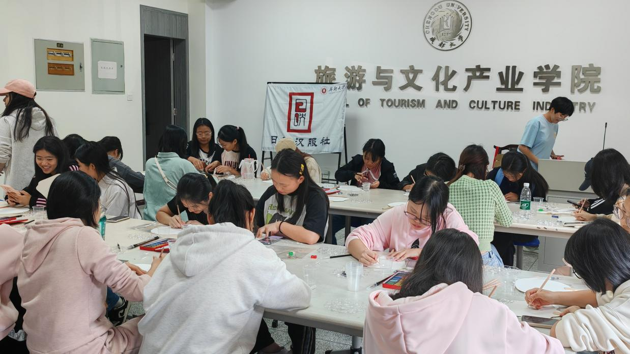 、职等你来辅导员工作室、轻旅社区育人工作站、日映汉服社主办“绘一柄扇,摇摇秋意来”水彩画扇活动在4102教室成功举办。