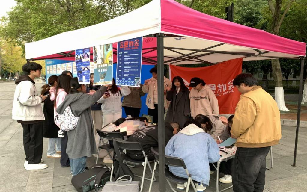 活动现场布置得充满历史文化氛围,摊位上,整齐地摆放着桌椅,一旁张贴着各种博物馆的官方公众号二维码,等待着同学们的探索。