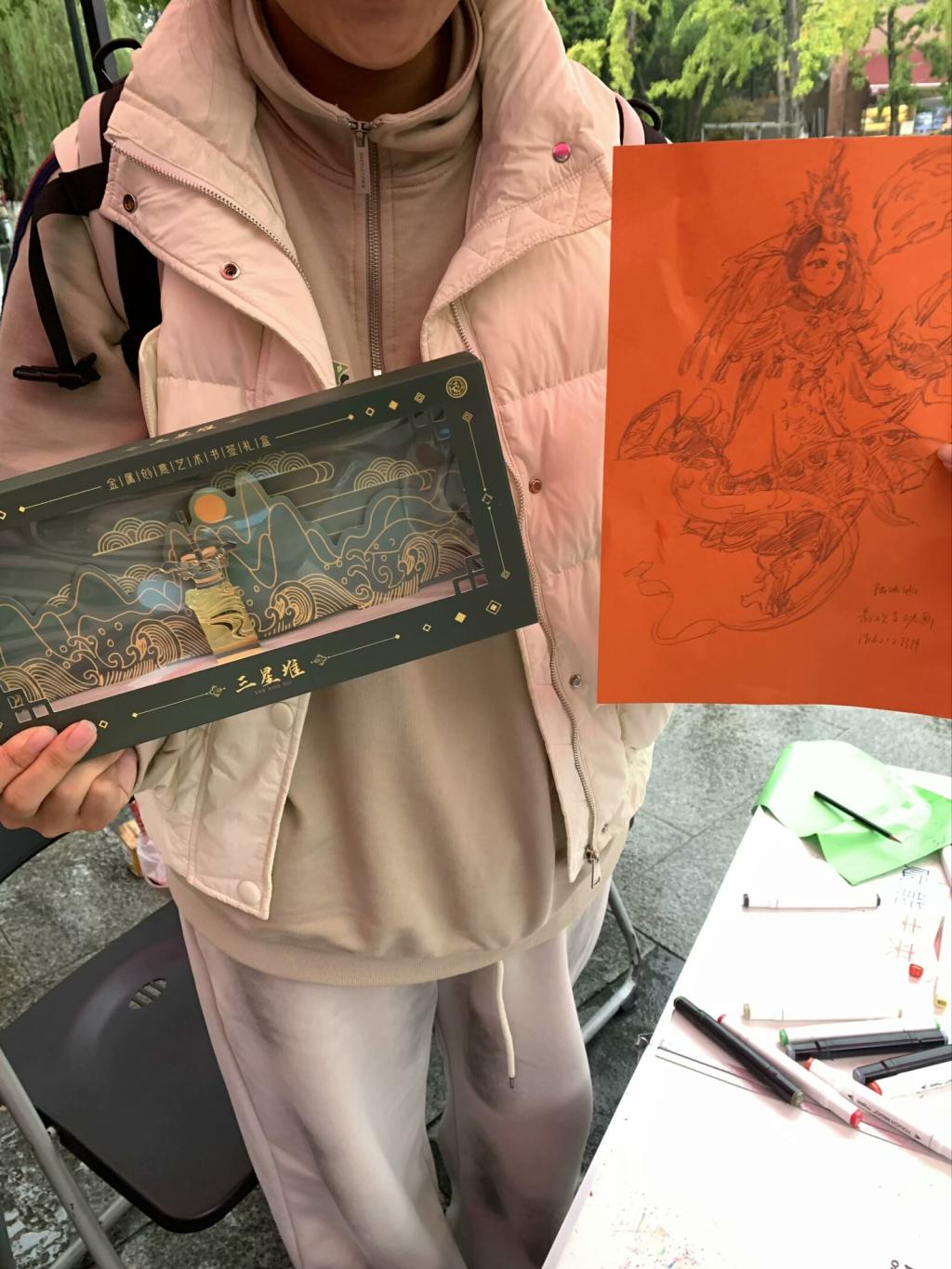 游戏区更是热闹非凡,同学们围坐在桌前,他们用心绘制博物馆文物的拟人画。有的同学将青铜鼎画成了一个威武的将军,身披战甲,眼神坚定;有的把青花瓷瓶画成了一位优雅的女子,身着古装,气质非凡。每一幅画都充满了同学们独特的想象力和对文物的理解。绘画过程中,同学们时而低头沉思,时而与身边的伙伴交流灵感,整个区域弥漫着浓厚的艺术氛围。