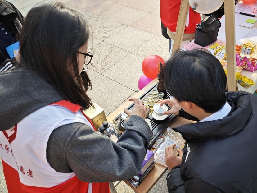 值得一提的是,茶艺协会的倾情加入为本次活动增添了一抹独特的文化韵味。在茶艺展示区,学生们得以近距离观赏茶艺表演,品尝香茗,更有机会亲手学习茶艺,感受中华传统文化的博大精深。茶香袅袅中,参与者伴着欢声笑语体味着文化的静谧与雅致,在暖暖茶香中体悟到茶艺之美,为心灵提供悠悠温雅。