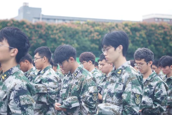 学生军训旅于各训练场举行默哀仪式。防空警报拉响,全体教官学员脱帽肃立,向“九一八”事变遇难同胞和为英勇奋战而牺牲的革命先烈默哀。生活在和平年代的旅院学子们借此机会,想对先烈们说:“山记得你,海记得你,人民永远不会忘记你!”