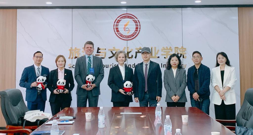 学院党委深化分析行业发展趋势和对人才的新要求,主动服务“新文旅”下的旅游人才培养,将国际化战略、人才战略和数字化战略作为学院发展战略。一是大力拓展海外合作项目。与QS学科排名名列前茅的香港理工大学、瑞士酒店管理大学等国际一流大学开展学术交流与合作办学;加入丝绸之路大学联盟旅游联盟,开展“新文旅·一带一路支点城市交流计划”,派出30余位师生在香港理工大学资助下开展香港与成都双向旅游研究项目和多项联合培养项目;立项2023年度中日青少年科技交流计划,选派10名师生在日本政府全额资助下赴日交流。二是大力加强人才队伍建设,五年引进教师19名,包括2名双师型行业领军人才、1名博士后(特聘副研究员)和16名青年博士,学院师资队伍结构极大改善,现有专任教师50人,其中高级职称教师28人,博士及以上学历教师 33人;强化师德师风建设,推进教育教学改革,建设创新型教学团队,学院教师在第五届全国教学创新大赛上获历史性突破,荣获副高组三等奖,获得各类国家级教学竞赛奖项28项。三是启动数字化战略。围绕旅游新趋势新业态,拓展数字化渠道,升级改造学院CAD辅助设计实验室,规划建设数字旅游实训室。