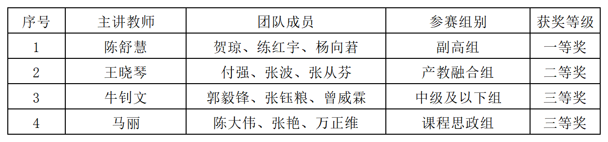 附:第四届四川省高校教师教学创新大赛我校教师获奖情况