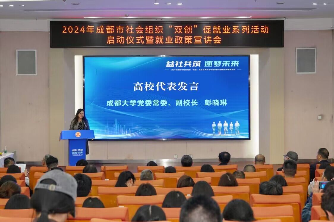 成都市社会组织促进会会长苏非作为社会组织代表发言。成都市民政局社会组织管理处处长吴祝家对《成都市民政局2024年万家社会组织“双创”促就业行动实施方案》进行了详细解读。成都市就业服务管理局就业服务处处长何彬,对高校毕业生就业创业相关支持政策进行宣讲解读。