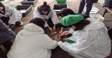 师生体验柿涩染布传统工艺