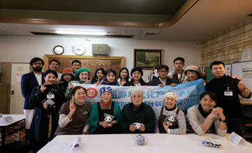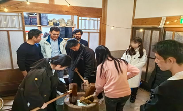 师生与岐阜大学学生一起体验“制作年糕”