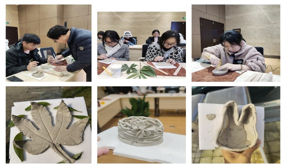 活动开始,张学勇老师向同学们介绍了陶艺的起源、明月窑的发展和陶瓷制作的流程工序。并在张老师指导下,同学们发挥才智和创意,利用材料和工具,将陶土变成各种艺术品。最后呈现出花样繁多的作品,如鸟巢、小鸟、兔子、叶子等。课程结束后,同学们还有一种余味未尽的感觉。
