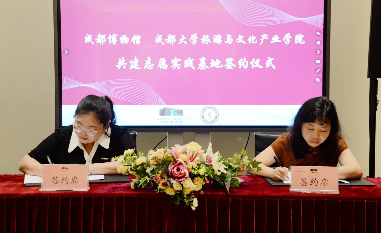 成都博物馆将为学院设置志愿服务岗位,根据学生特点开展培训,为观众提供精细化、专业化的志愿服务以及根据学校人才培养需求组织专项志愿服务。学院将以共建志愿实践基地为契机,进一步推进与成都博物馆的深度合作与交流。