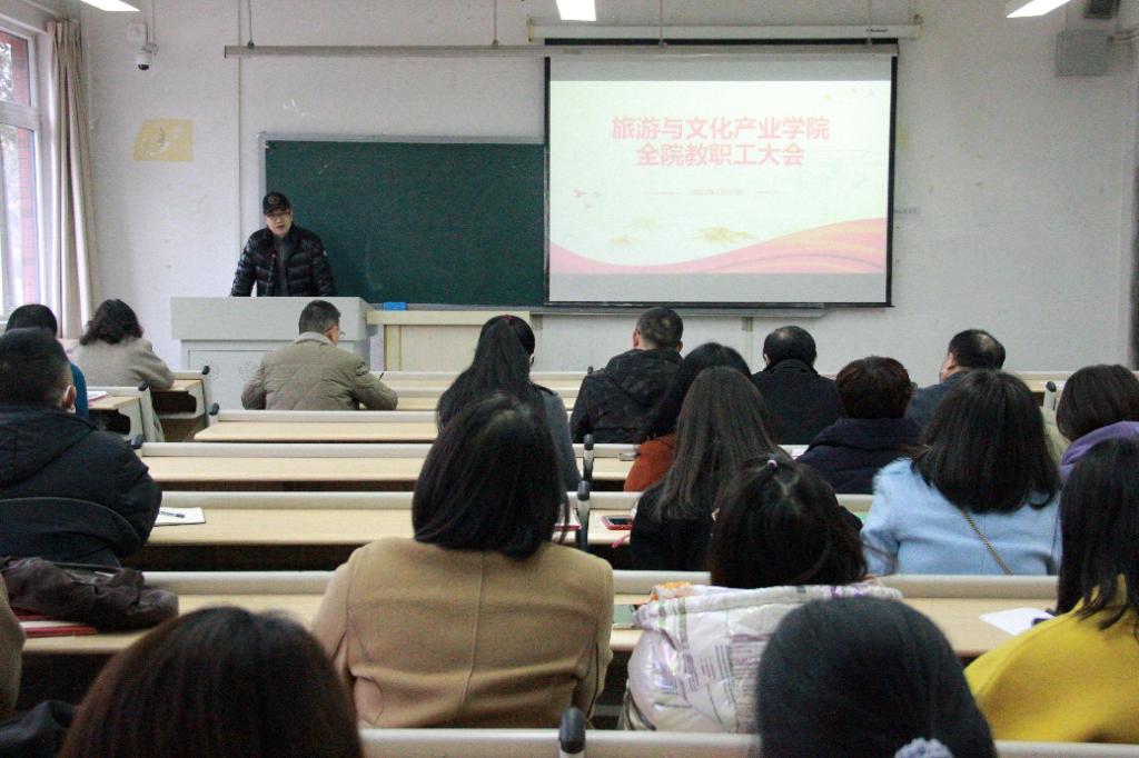 杨春霞强调,2023年,学院工作要把握好后疫情时代旅游文化产业恢复发展的大势、大运及后大运时代的新机遇挑战、中央、省市关于聚焦高质量发展推动经济整体好转的政策优势这“三个大势”,在城市、学校的跨越式发展中找位置、勇担当,持续推动学院党建、教学、科研、学生、社会服务等各项工作突破创新。她对学院党建工作提出了守底线、保运转、促发展的总体思路和要求。