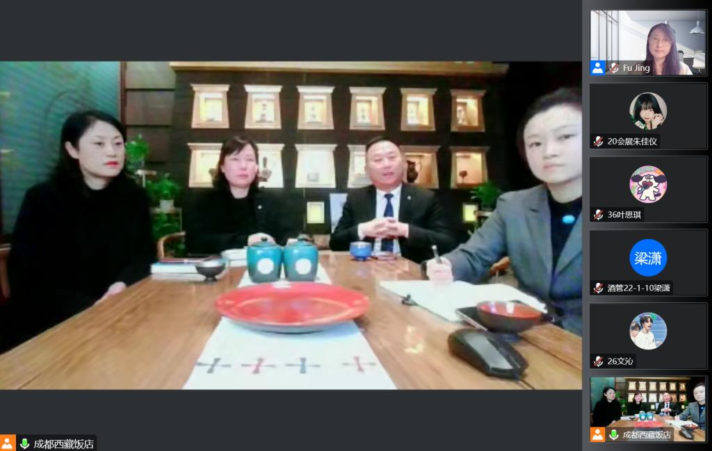 酒店管理专业师生通过视频平台,云端采访了成都西藏饭店有限责任公司党委书记、董事长陈蓉女士及其管理团队。此次访谈,为帮助同学们在疫情期间调整心态、坚定信念、勇担责任起到了非常积极的作用。