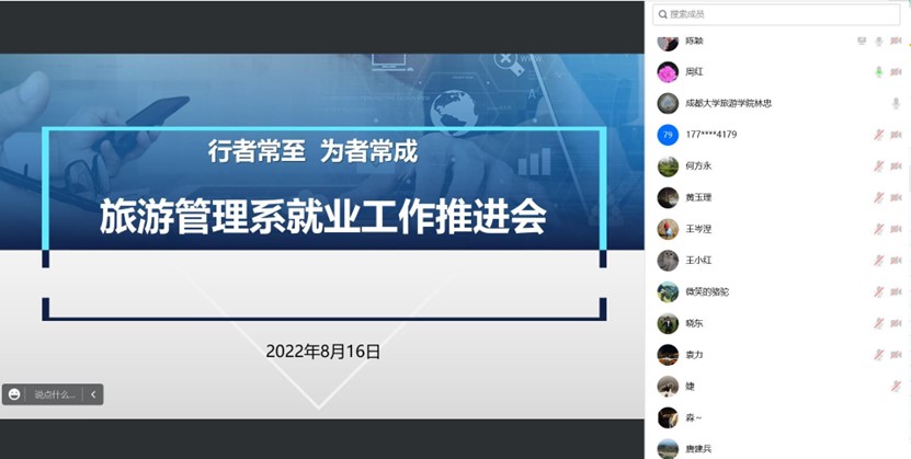 8月16日上午,旅游管理系在线上召开就业工作推进会,学院党委副书记周红及旅游系全体教师参加会议,会议由旅游管理系主任陈颖主持。