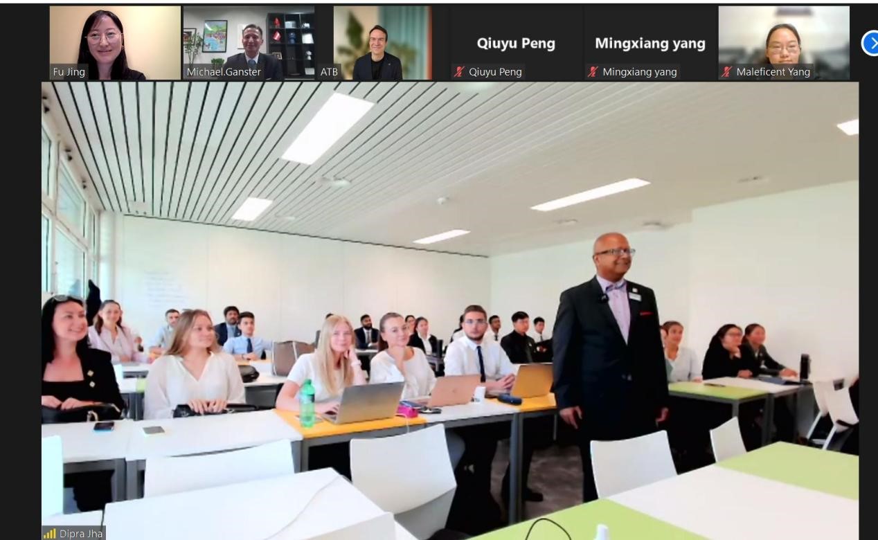 师生携手成都W酒店总经理Alain-Thomas Briere先生与长沙尼依格罗(Niccolo)酒店总经理Michael A. Ganster先生,走进了SHMB-Cesar Ritz在瑞士布里格校区的云课堂,为三个学院来自中国、法国、冰岛、缅甸、越南、泰国、俄罗斯、沙特阿拉伯、罗马尼亚等国60+名师生们带来了“Cross-cultural Dialogue on Hospitality Leadership”的主题分享。