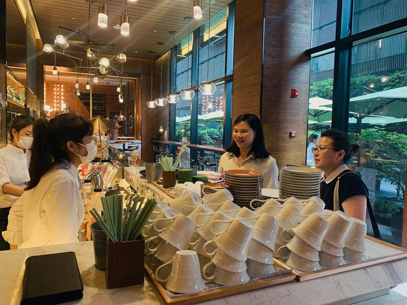 随后,院领导前往酒店餐饮部的米其林一星素食餐厅和法式西餐厅看望慰问同学们,亲切询问了同学们在实践期间的工作和生活情况,听取了同学们对于此次学习的体会与收获。同学们一致表示特别喜欢这样的体验,将珍惜此次学习机会,用心琢磨工作、厘清未来规划,为将来进入行业奠定基础。最后,院领导勉励大家要积极转变观念,提醒大家在实践学习期间注意个人安全,加强与学院的沟通和联系,并预祝大家实践学习圆满顺利。