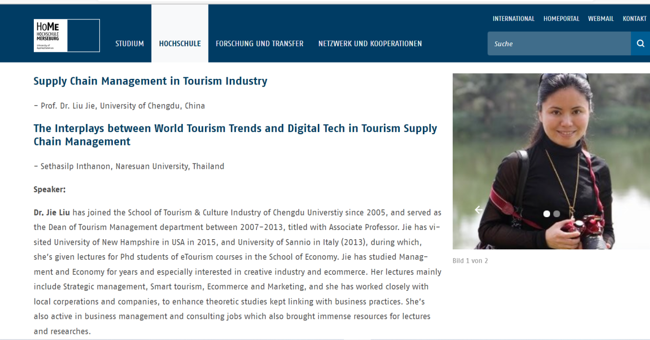 首次与德国梅泽堡应用科技大学、泰国那黎宣大学三校在“旅游业物流与供应链管理”领域的学术交流。接下来,三方将在教学研,尤其在联合培养硕士及博士研究生等领域展开深度合作。