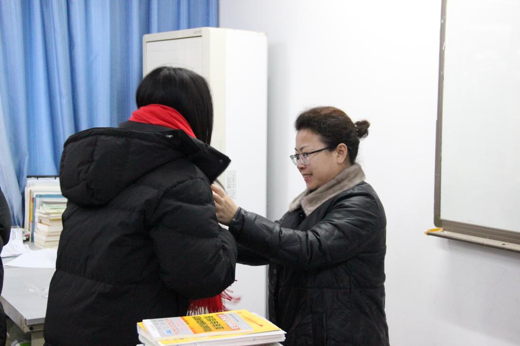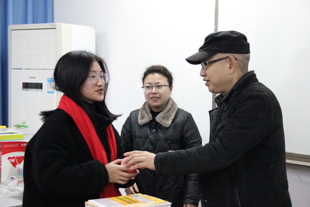 随后,学院领导与老师们亲自给同学们戴上了精心准备的象征吉祥的红色围巾和象征平安上岸的苹果,学院用特别的方式表达了对考研学子的关怀,鼓励同学们以饱满、轻松、平和的心态认真备考,祝愿同学们取得好成绩。