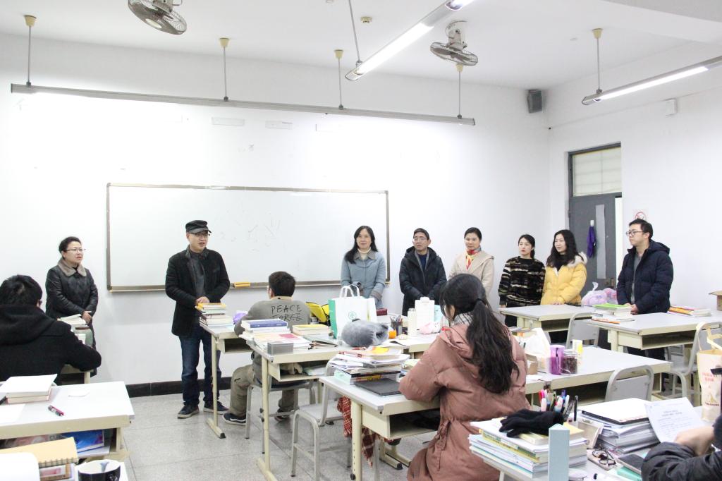 院长诸丹,党委书记孙雁霞,副院长练红宇、张学权,党委副书记周红,学工办主任燕爽及全体辅导员来到4312考研自习室,对正在认真备考的考研同学进行了慰问,为他们加油鼓气,做考研前的最后动员。