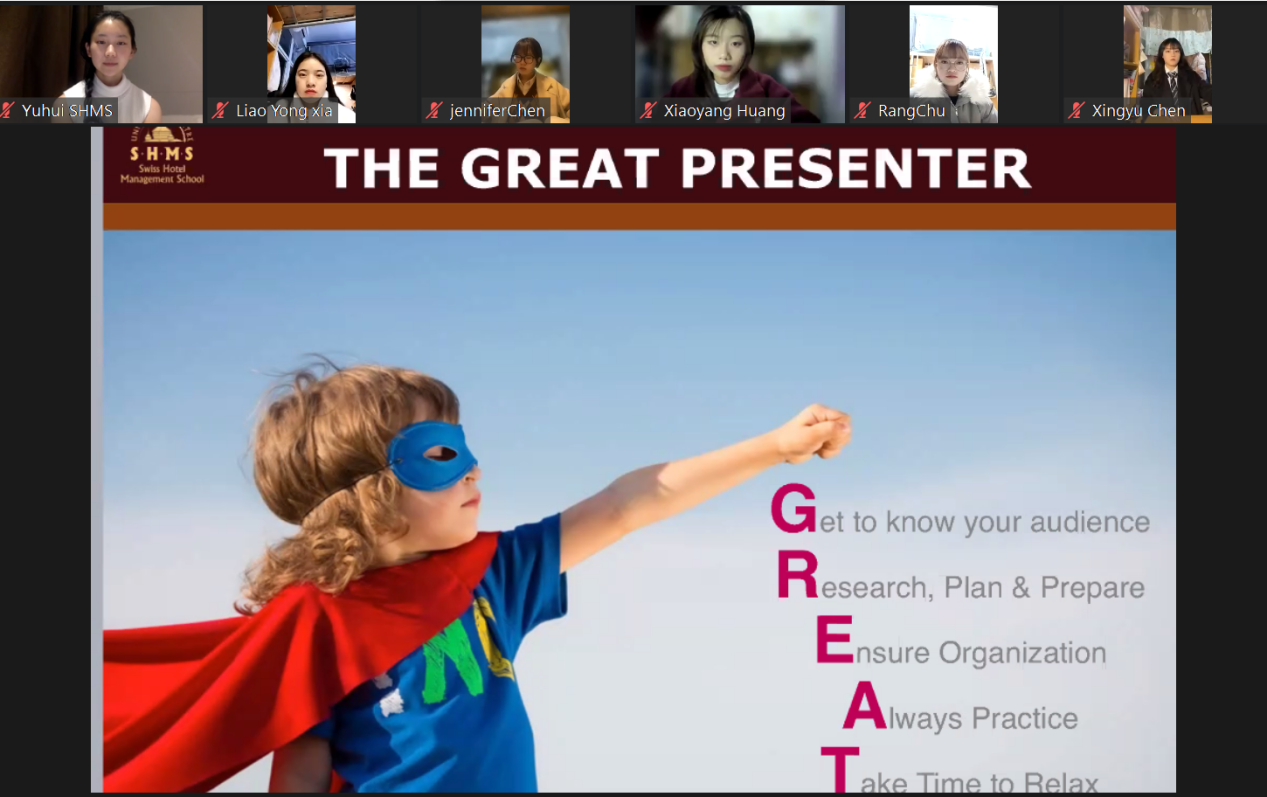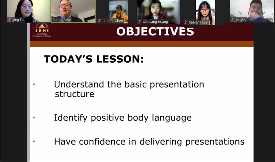 与瑞士酒店管理学院(Swiss Hotel Management School,以下简称SHMS)围绕着“酒店业的演讲结构与表达技巧”开展了云课堂交流活动,来自两校50多名酒店管理及相关专业的师生获邀参加。