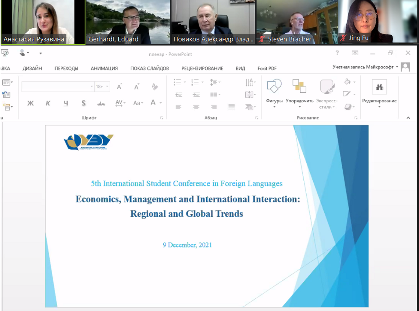 学生应邀参加了由俄罗斯联邦科学和高等教育部与新西伯利亚国立经济管理大学共同举办的“第五届国际学生大会”。本届大会的主题为“经济、管理和国际互动:区域和全球趋势”,采用英语、德语、法语、中文、韩语、日语、俄语多语语言,通过线上线下相结合的方式开展。会议吸引了130多名来自12个国家、10所大学的学生注册报名,在8个平行论坛中完成了70多个主题分享与汇报。